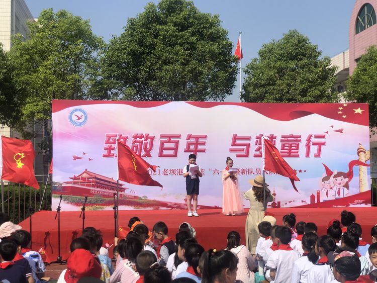 六月是童年的摇篮,是童年的梦乡。在这风轻云淡、碧空如洗的六月第一日,老坝港小学开展了“致敬百年 与梦童行”为主题的庆“六一”暨新生入队活动。全体师生、校少工委成员、家委会成员共同欢度这美好的时光。