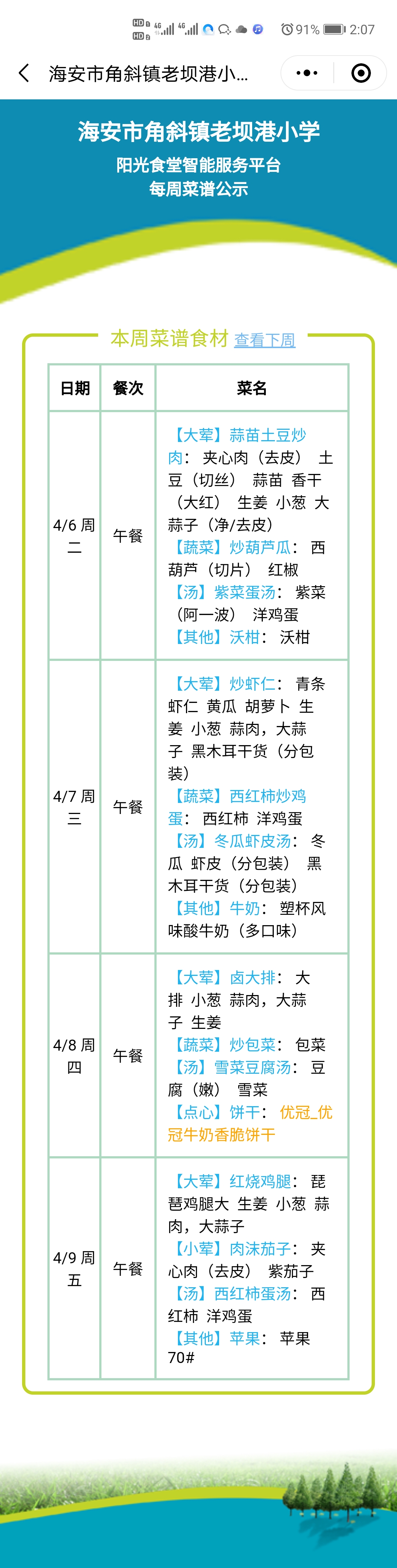 菜谱公示-4月6日