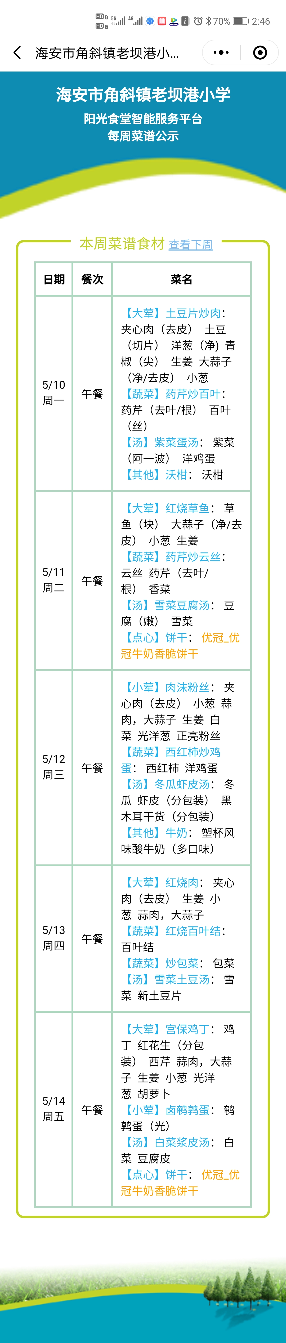 食堂菜谱公示5月10日5月14日